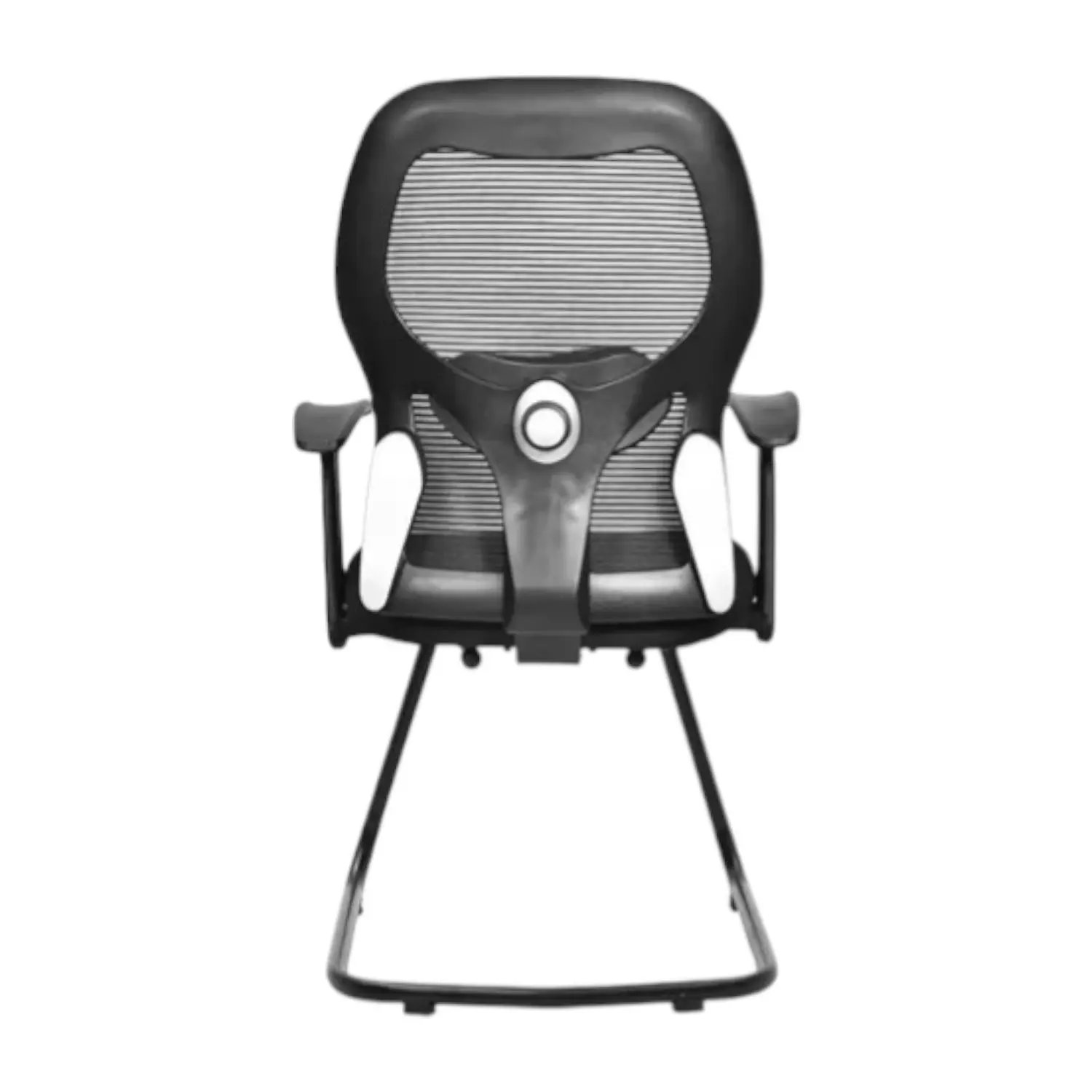 | Material Made Of: White Frame with Breathable Black Mesh Fabric and PU Molded Seat Cushion with Black Fabric and Seat Cover |