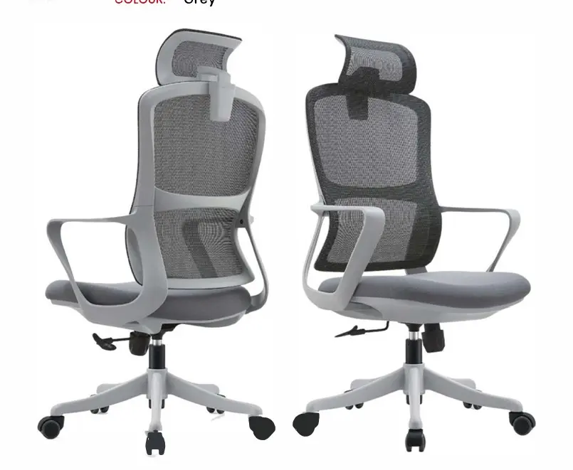 Back and Seat               : Breathable Grey Mesh Fabric and PU Molded Seat Cushion