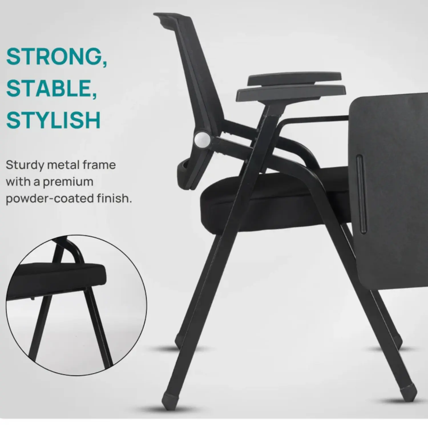 Built-in Writing Pad: Smooth, sturdy writing surface attached to the chair, ideal for lectures, seminars, or meetings.