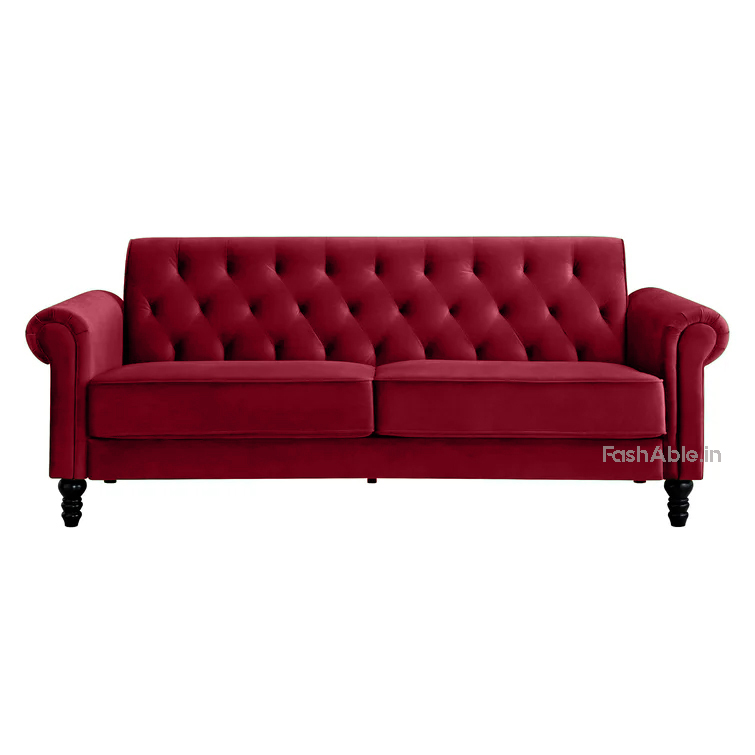 - Rolled Arms: The arms are rounded and high, characteristic of Chesterfield sofas.