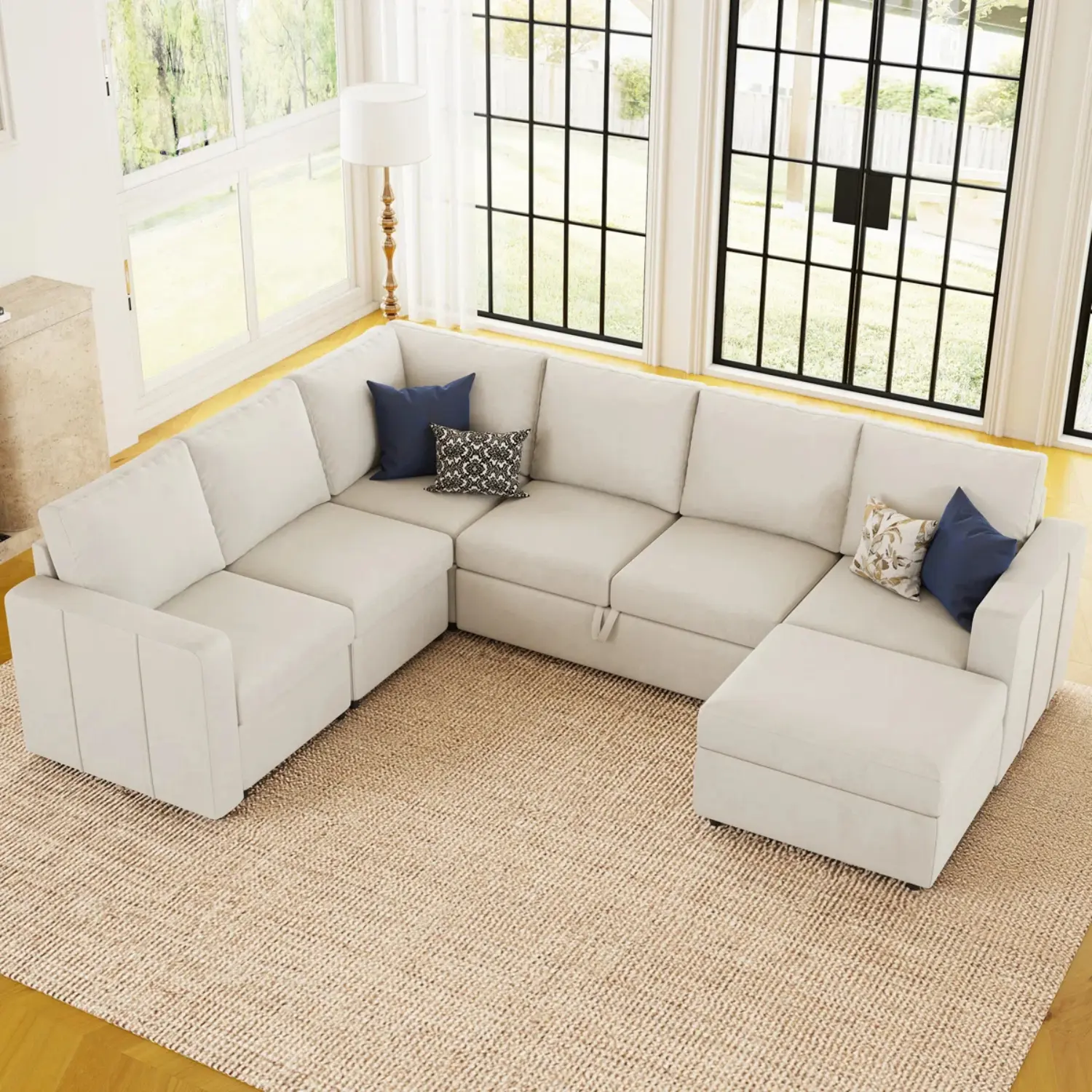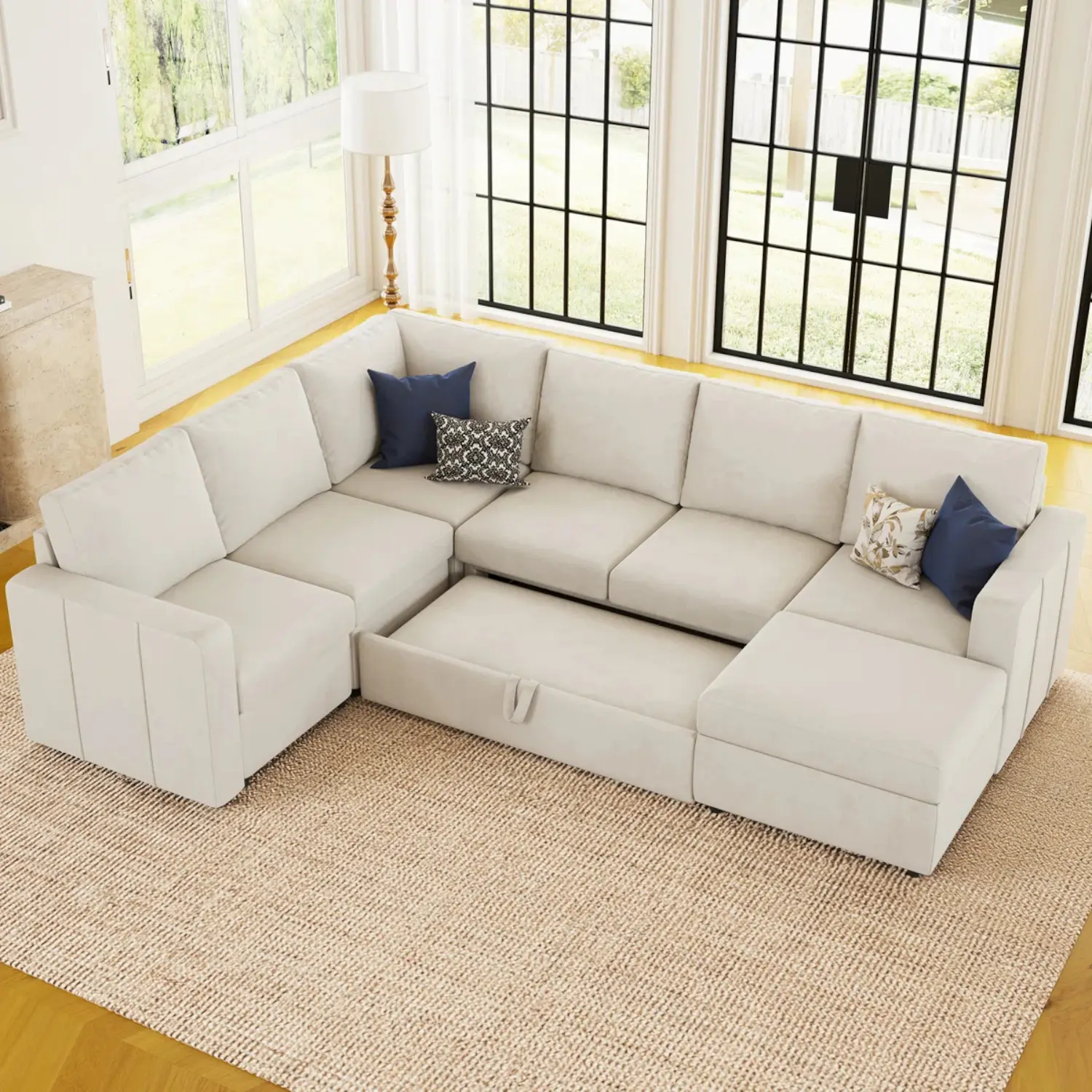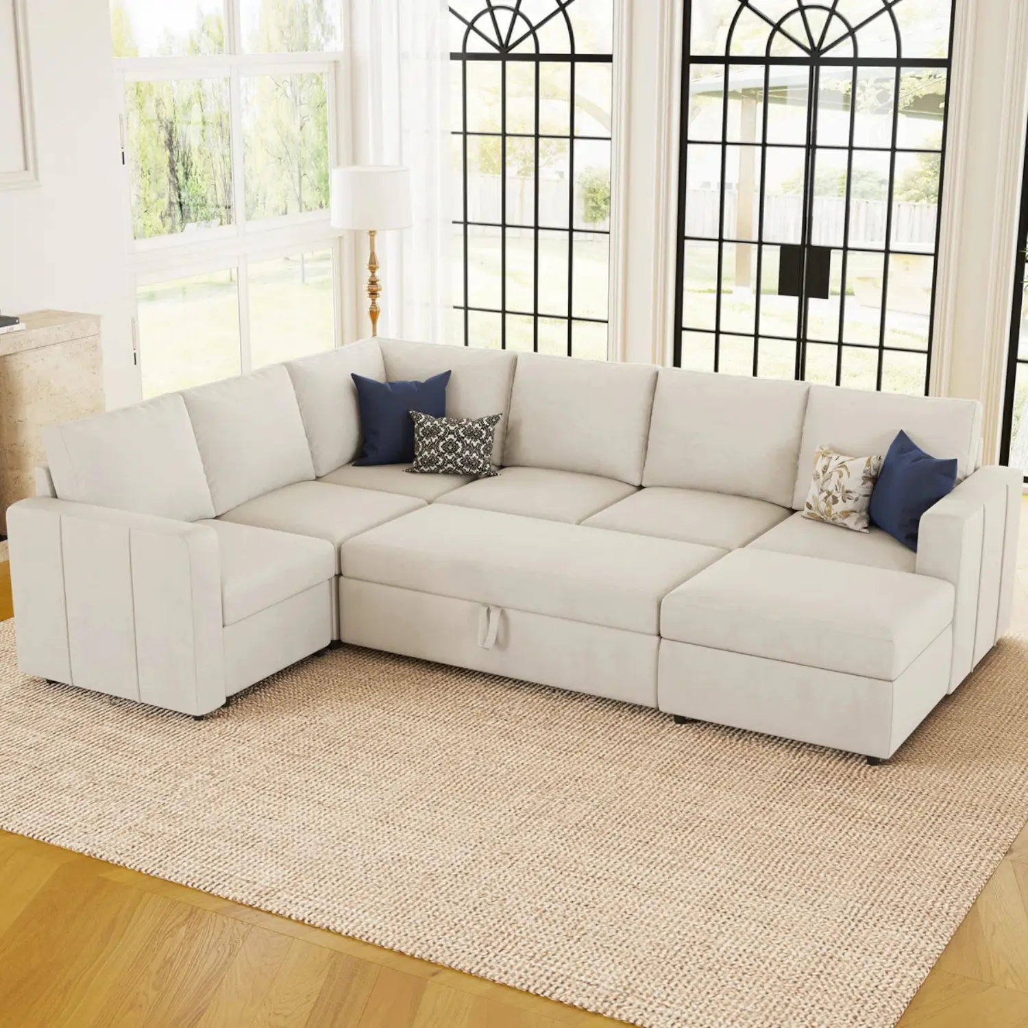 Multi-functional Design: Easily converts from a spacious corner sofa with a cozy chaise lounge to a comfortable bed, making it perfect for accommodating guests or lounging after a long day.