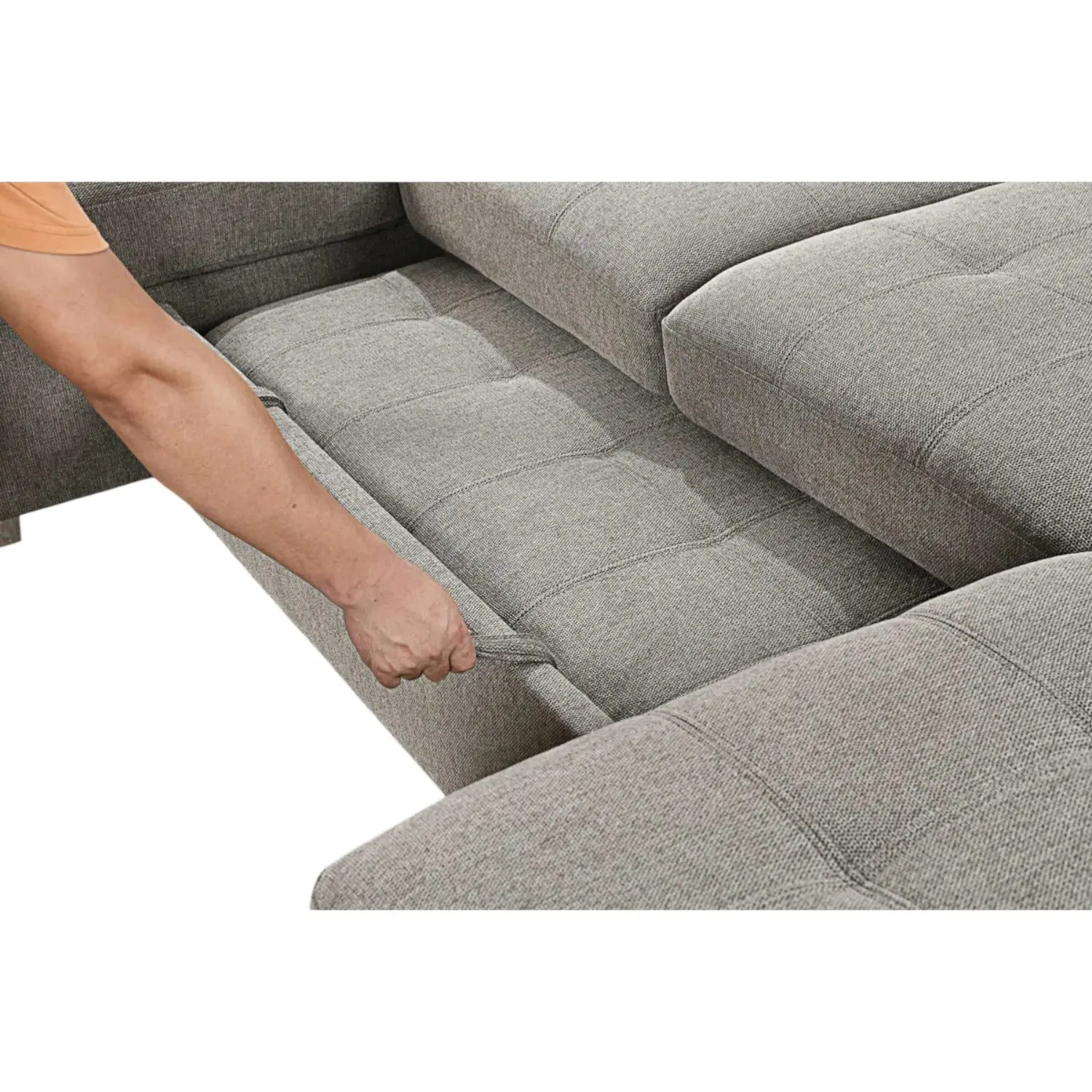 Dual chaise sections provide ample seating, and the sofa-bed functionality ensures effortless accommodation for guests.