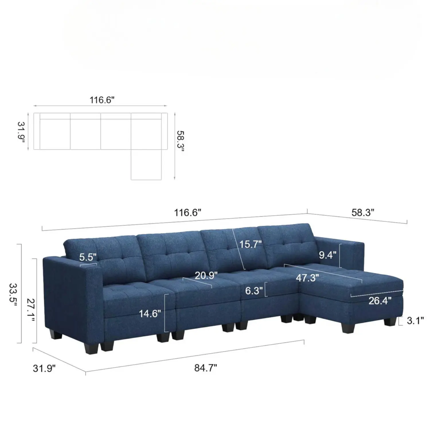 | Overall Size in Centimeters: 85 H x 81 W x 296.1 L | Overall Size In Inches: 33.5 H x 31.9 W x 116.6 L |