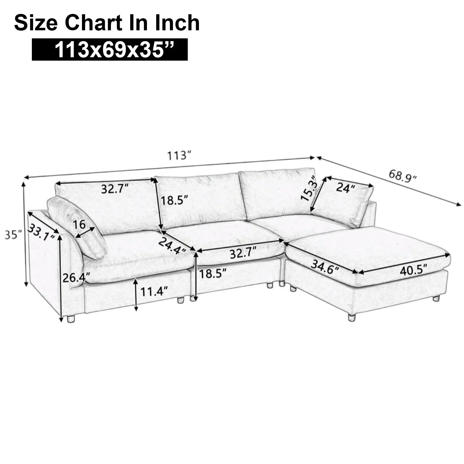 | Overall Size in Centimeters: 88.9 H x 175 W x 287 L | Overall Size In Inches: 35 H x 68.9 W x 113 L |