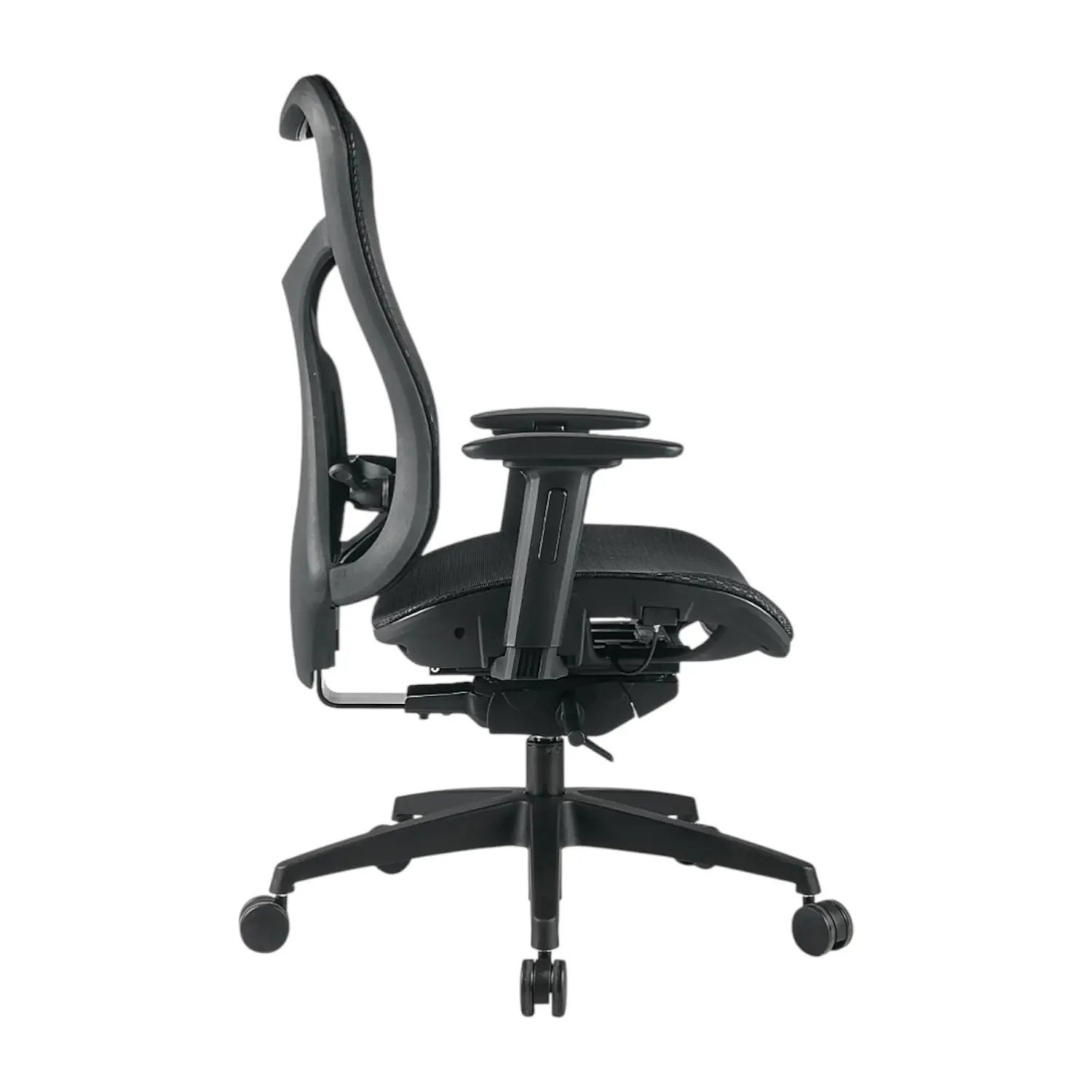 The ObsidianFlex features a contoured high-back design that naturally supports your spine, encouraging healthy posture during extended work sessions. Its adjustable lumbar support reduces lower back strain, while the cushioned headrest provides soothing relief for your neck and shoulders.