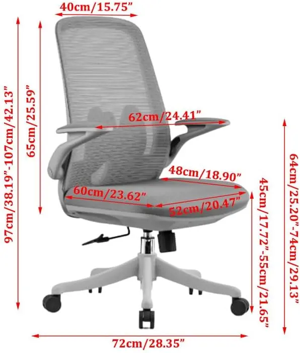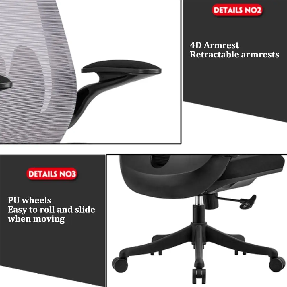 Back and Seat : Breathable Mesh Fabric and PU Molded