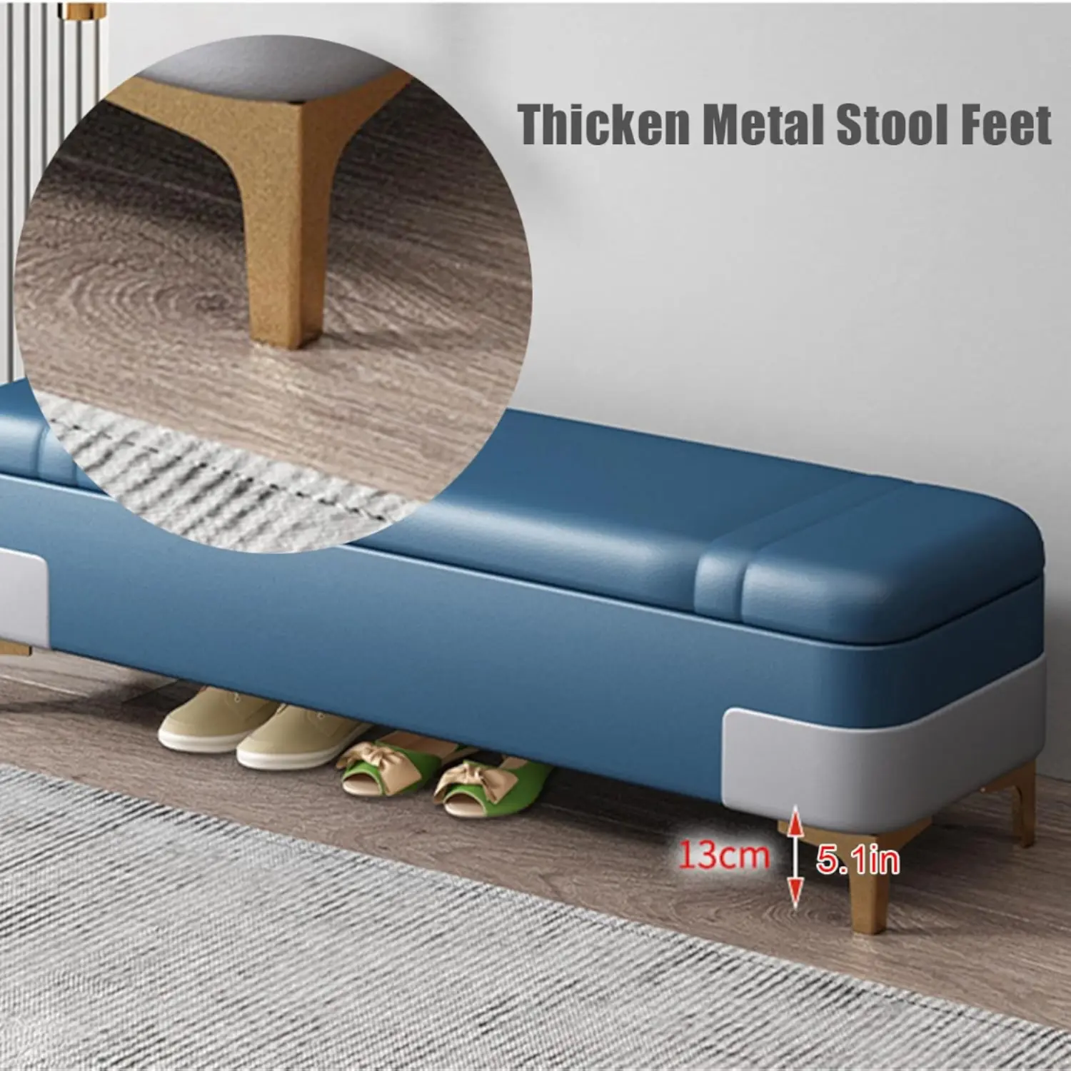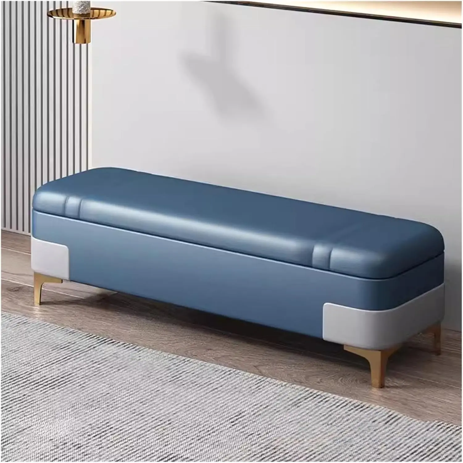 This storage ottoman helps maintain a clean and organized bedroom environment.