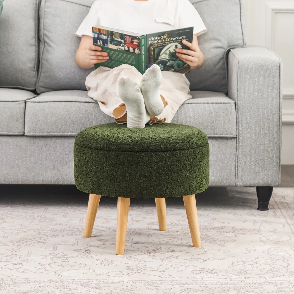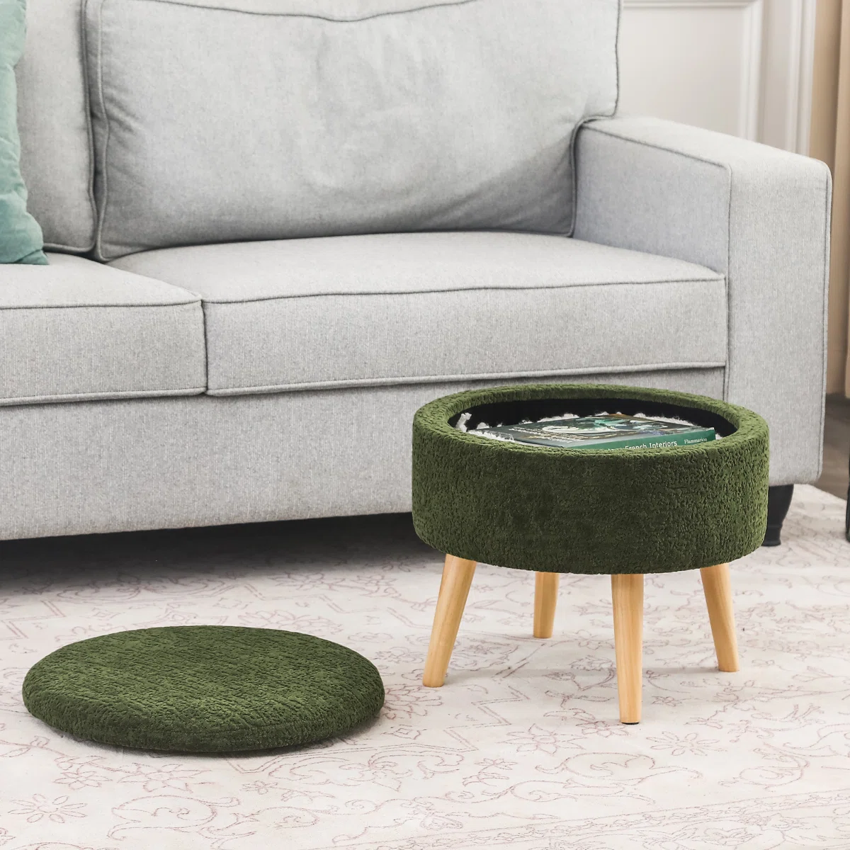 Lift the plush, cushioned top to find a roomy storage compartment — perfect for tucking away throws, remote controls, books, or anything else you want within reach but out of sight. -