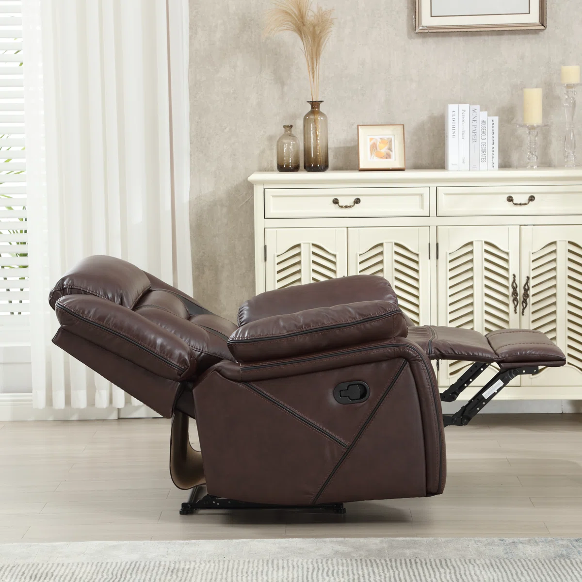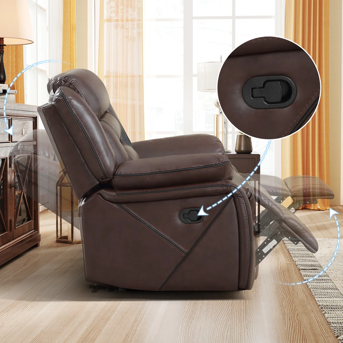 Robust Construction: Built on a strong wooden frame with a reliable recline system to withstand everyday use.