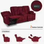 Each end seat features an advanced motorized recline function, allowing users to find the perfect angle at the touch of a button. The quiet, reliable motor system ensures seamless transitions from upright seating to full relaxation mode. Premium padding, a supportive high back, and soft armrests create a plush seating experience ideal for movie nights, family time, or unwinding after a long day.