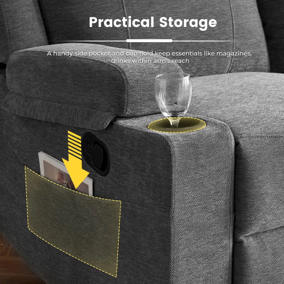 Manual Recline Function: Effortlessly pull the lever to recline and stretch out – no plugs or wires needed.