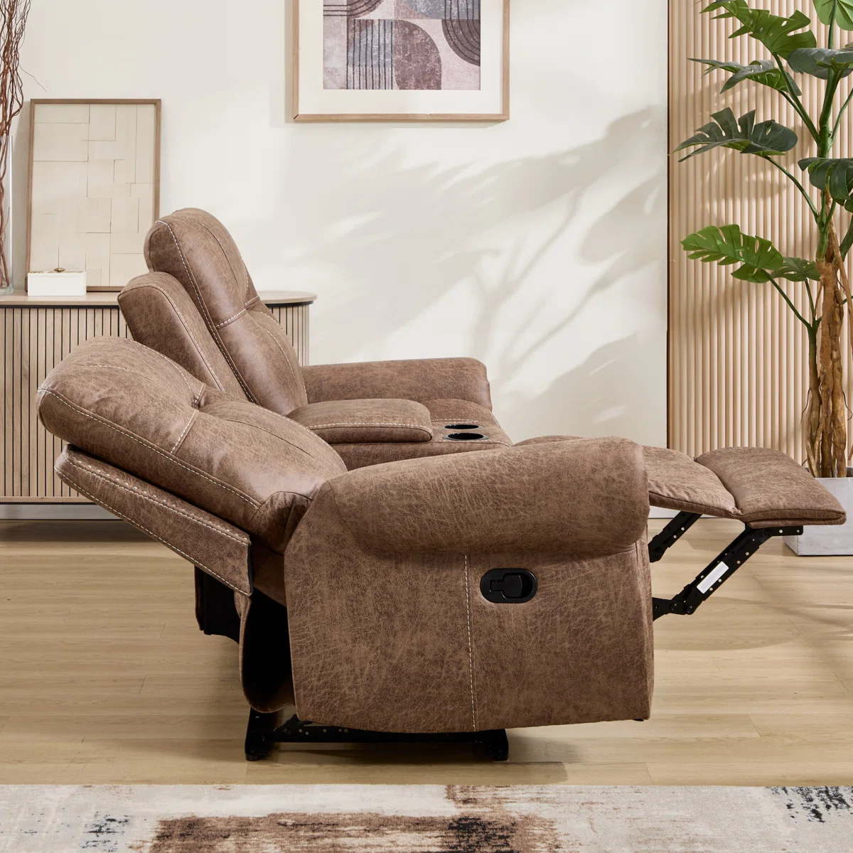 Dual Manual Recliners: Each seat reclines independently with an easy-to-use manual lever, allowing personalized comfort for two.