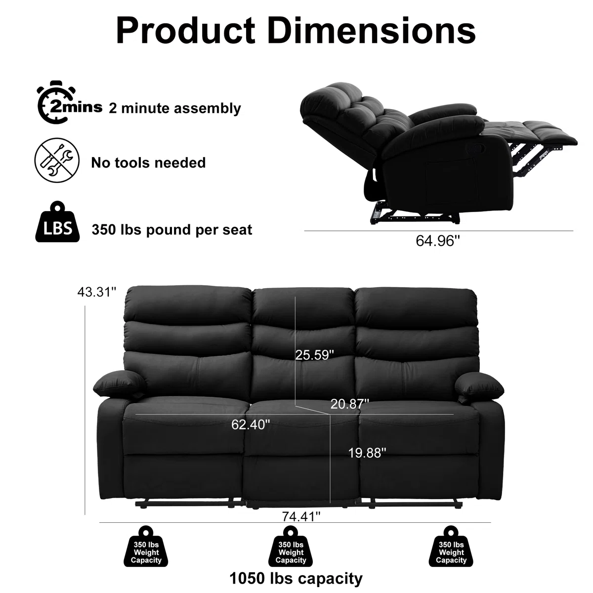 Triple Comfort Seating: Three generously padded seats with individual manual recline functions let everyone find their perfect position.