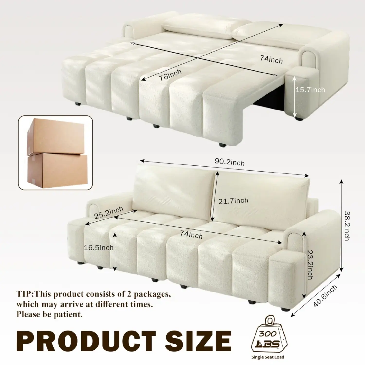 The 90-inch width offers generous room for both sitting and sleeping while maintaining a smart, space-saving footprint for modern interiors.