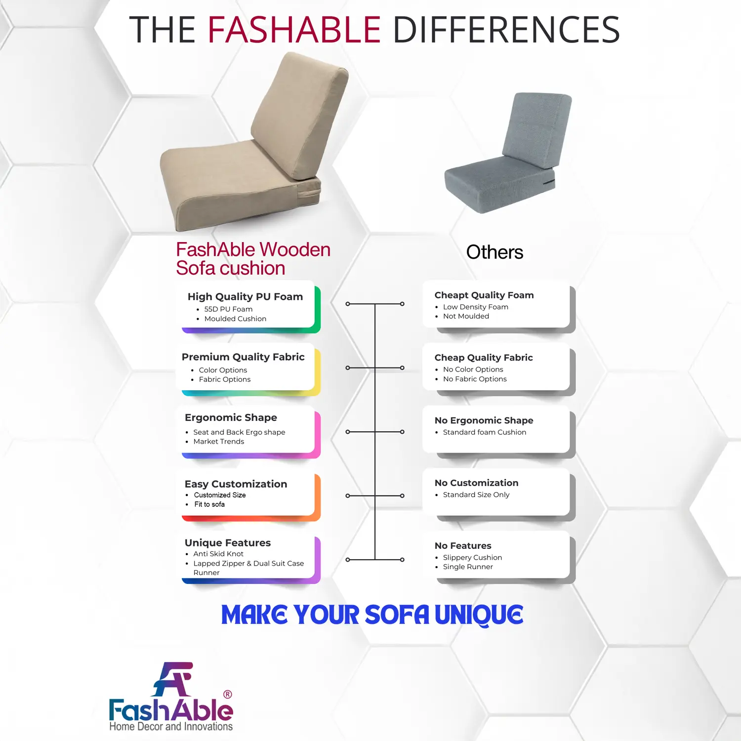 Wooden Sofa Cushion: Custom Made, Measure and Refer Size Guide Fabric Options: Type of fabric (Premium Imported Suede)